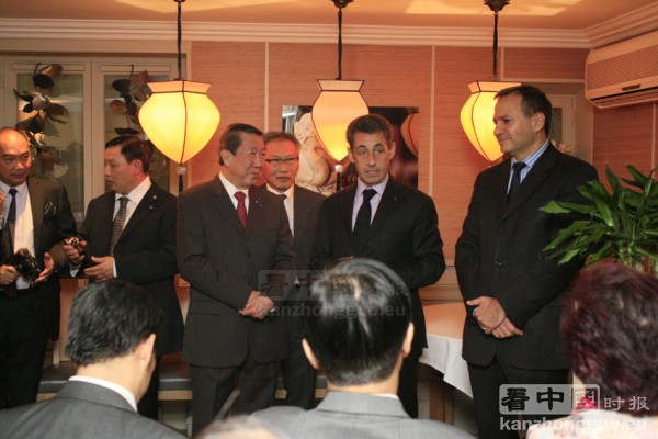 萨科齐(右)与《看中国》时报社长Patricia Chen女士(左)