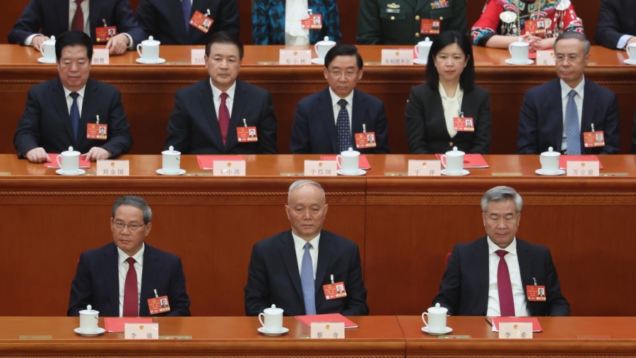 2025年3月11日,国务院总理李强、中央政治局常委蔡奇、副总理李 希等在北京人民大会堂出席第十四届全国人民代表大会第三次会议闭 幕式。 (图片来源:Lintao Zhang/Getty Images)